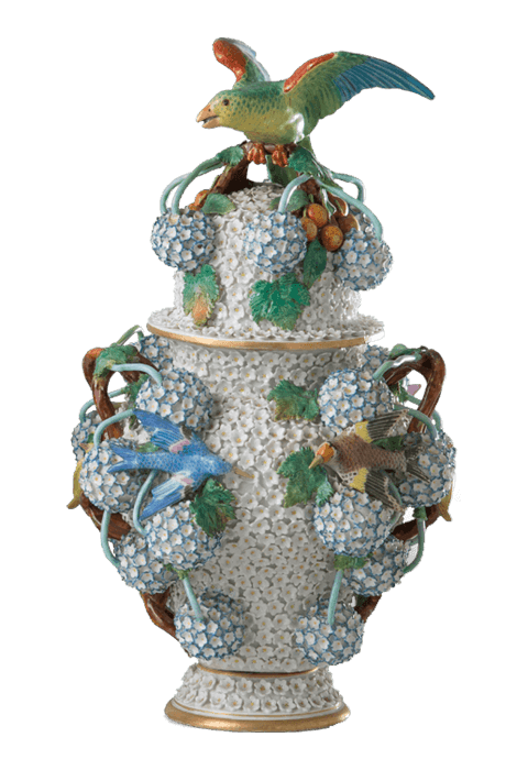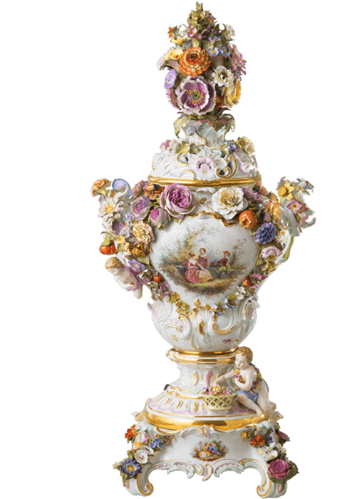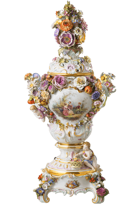 Before the rise of Meissen porcelain, the nobility in Europe were fascinated by the exotic porcelain from Asia. Apart from buying this “white gold”, they were also eager to reproduce porcelain on their own continent. In the 18th century, court banquets in Europe were extremely luxurious, and featured sugar sculptures that were used to decorate appetizers on dessert tables. The birth of Meissen porcelain not only laid the foundation for the development of European porcelain, but also brought about the emergence and prevalence of porcelain sculptures in European dessert banquets. As personal salons edged out large banquets, the demand for porcelain figurines suitable for small rooms surged. It was Johann Joachim Kaendler who suited Meissen porcelain perfectly to this demand. The talented sculptor embedded European decorative art—Baroque, Rococo, etc.—into porcelain, and produced porcelain on the themes of court customs and myths. Even today, the charm of Meissen porcelain figurines does not fade.